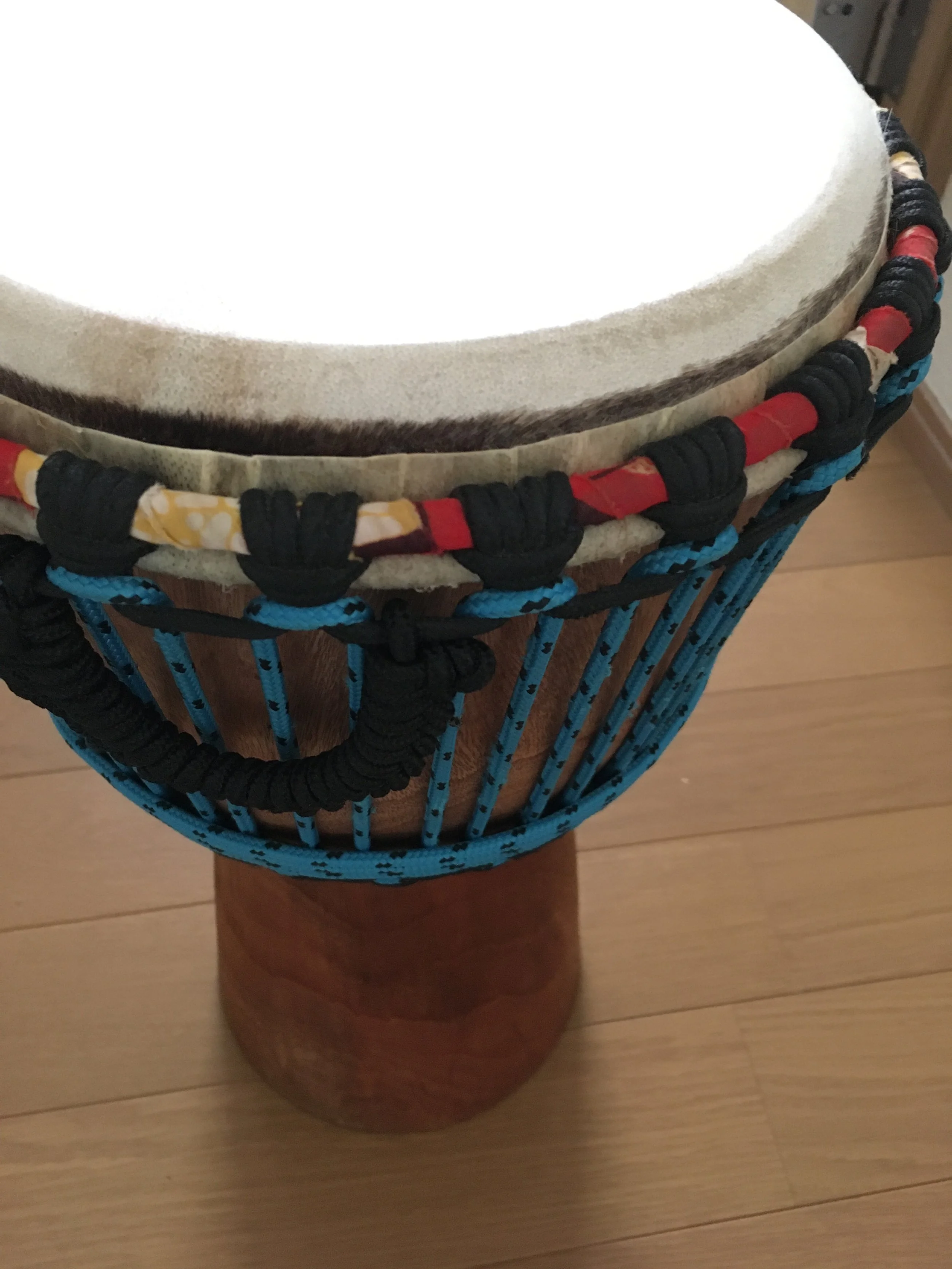 I came across a djembe through my friend Yu, who is a craftsman who makes various items using wood turning technique, including djembes.